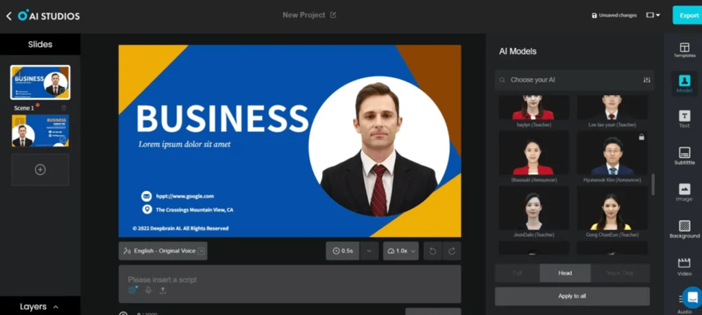 DeepBrain AI’s intuitive design offers significant time and cost savings, making video production a breeze even for novices.